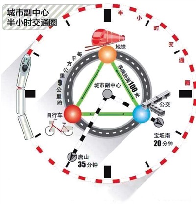 按照规划,未来城市副中心建设要达到3个指标:一是“换乘100米”,城市副中心轨道交通与各类交通工具的换乘要控制在100米左右;二是“9公里”,城市副中心路网密度要达到9公里,高于中心城市路网密度,还要加强林荫路建设,形成步行与自行车为主的慢行系统;三是“一个站”,即副中心火车站,要以轨道上的京津冀为契机,加强与顺义、平谷、亦庄新城的交通可达性,和京津冀互联互通。