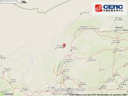 人民网北京4月15日电 据中国地震台网正式测定,4月15日15时39分在内蒙古自治区阿拉善盟阿拉善左旗(北纬39.8度,东经106.3度)发生5.8级地震,震源深度10千米。